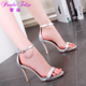 2017新款露趾银色高跟凉鞋女夏性感细跟防水台一字扣带凉鞋鱼嘴鞋