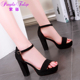 2017新款真皮防水台鱼嘴高跟鞋细跟露趾高跟凉鞋女夏性感罗马凉鞋