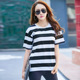 条纹T恤女 2017夏装新款百搭经典圆领短袖t恤宽松女式上衣88881