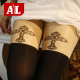 AL夏季日系女士拼接丝袜连裤袜子纹身潮假高筒长筒袜过膝大腿半截
