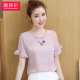 雪纺衫短袖女春夏装2017时尚新款韩版宽松七分袖上衣服短款打底衫