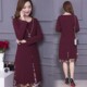 2017春季新款时尚大码女装复古印花连衣裙拼接假两件打底裙中长款