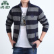 战地吉普男士开衫毛衣加绒加厚夹克外套秋冬款青年保暖条纹针织衫