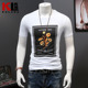 库朗2017夏季男士t恤 短袖韩版潮流 夏天丝光棉圆领植物花卉衣服