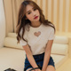 2017夏季韩版纯色桃心圆领短袖t恤女 修身百搭显瘦套头上衣打底衫