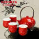 多样屋茶具蝶舞红梅婚庆礼盒装1壶4杯时尚新骨瓷茶具套装