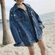 2017春秋韩版复古刺绣花朵牛仔外套女学生原宿bF宽松上衣中长款潮
