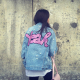 阳崽 2017春装新款 水洗磨白宽松长袖刺绣亮片牛仔夹克女短款外套
