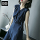 SG2017夏装新款女装V领口袋休闲七分裤连体裤无袖系带收腰连体衣