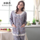 春夏季薄款女士中青年纯棉睡衣春秋全棉加大码花边休闲圆领家居服