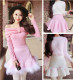 模特实拍~韩版甜美一字领性感露肩蝴蝶结显瘦连衣裙8007