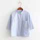 2016春夏装新款宽松显瘦条纹双口袋中袖五分袖衬衫女bf风百搭衬衣