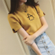2017夏季韩版纯色半高领字母短袖针织衫打底衫女套头半袖针织T恤