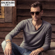 英爵伦 男士长袖T恤 欧美风修身男装个性V领上衣 春装纯色打底衫
