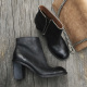 毛猫 2016冬季新款 暗黑做旧复古高跟圆头侧拉链粗跟短靴及踝靴