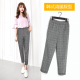 棉麻女裤夏新亚麻九分裤小脚哈伦裤学生休闲裤松紧腰格子长裤子薄