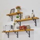 loft壁挂实木铁艺书架墙上隔板置物架客厅机顶盒架厨房一字层板架