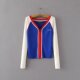 欧美风短款修身撞色针织衫女字母刺绣拉链长袖v领毛衣开衫打底衫