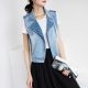 帅气机车版型复古水洗做旧磨破 斜纹棉 翻驳领短款牛仔马夹马甲