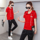 春夏新款运动长裤修身圆领运动套装短袖印花大码幼儿园服女装显瘦