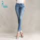 异域特区 2017新款棉弹中腰小脚牛仔裤女显瘦牛仔铅笔裤潮长裤子