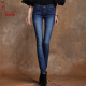 异域特区2017深色超高腰显瘦修身牛仔裤女小脚裤带绒铅笔长裤