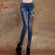 异域特区2017新款欧美贴布徽章牛仔裤女弹力小脚裤个性时尚图案
