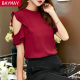 雪纺衫女短袖2017夏季新款韩版女装立领露肩荷叶袖性感百搭上衣潮