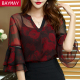雪纺衫短袖女韩版夏季新款夜店性感小V领网纱透视荷叶袖气质上衣