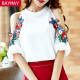 露肩绣花雪纺衫女短袖2017夏季新品立领拼接宽松性感气质上衣小衫