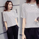 2016秋季七分袖条纹T恤女韩版宽松圆领T恤显瘦短袖体恤学生文艺范