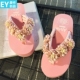 【2017新品】泰国普吉岛海边沙滩手工花朵卡通兔平底高跟人字拖鞋