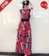 漫姿妮manzini 正品 连衣裙 17年夏 复古印花松紧腰真丝长裙女装