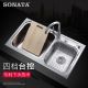 舒耐特 水槽双槽套餐304不锈钢拉丝一体成型水槽洗菜盆7843