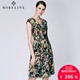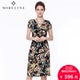 MORELINE沐兰正品夏新款修身花卉印花连衣裙女 中裙 短袖