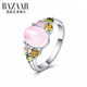 BAZAAR首饰黄水晶戒指女饰品925银粉晶紫水晶欧美指环宝石戒指