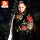 织锦楼 夏季新款刺绣围巾桑蚕丝丝巾黑色真丝丝巾女绣花牡丹围巾