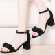 一字扣高跟鞋女夏季2017新款女鞋韩版百搭粗跟凉鞋中跟女士鞋子潮