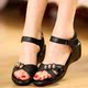 夏季新款真皮妈妈鞋凉鞋坡跟凉鞋女大码平底中老年女鞋软底女凉鞋