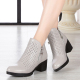 2017春季新款短靴女真皮女鞋镂空靴凉靴高跟粗跟网靴时尚女靴
