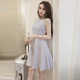 性感夜店装2017新款连衣裙女蕾丝裙圆领高腰打底A字裙大摆裙显瘦
