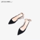 17春夏新款百搭韩版平底浅口单鞋女真羊皮尖头低跟一字带扣凉鞋女