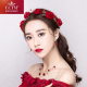 CCTM新娘头饰花朵发饰套装结婚三件套敬酒服礼服婚纱红色头花配饰