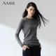 Amii[极简主义] 秋冬装新款艾米短款修身套头羊毛衣打底针织衫