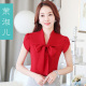 蝴蝶结衬衫女夏短袖中长款修身韩版职业装衬衫工装工作服白衬衣女