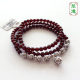 翠达 天然酒红色石榴石多圈手链 配泰银莲花女手串 16230