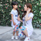 2017亲子装春夏卡通大码中长款短袖t恤套装宽松母女裙百搭打底衫