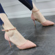 一字扣带2017夏季尖头高跟鞋绒面铆钉中空性感百搭细跟单鞋女凉鞋