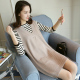 2017春款新装韩版宽松中长款套装条纹针织衫两件套连衣裙毛衣女装
