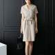 亚麻裙子夏休闲女2017新款女装棉麻料连衣裙衬衫大码气质一步中裙